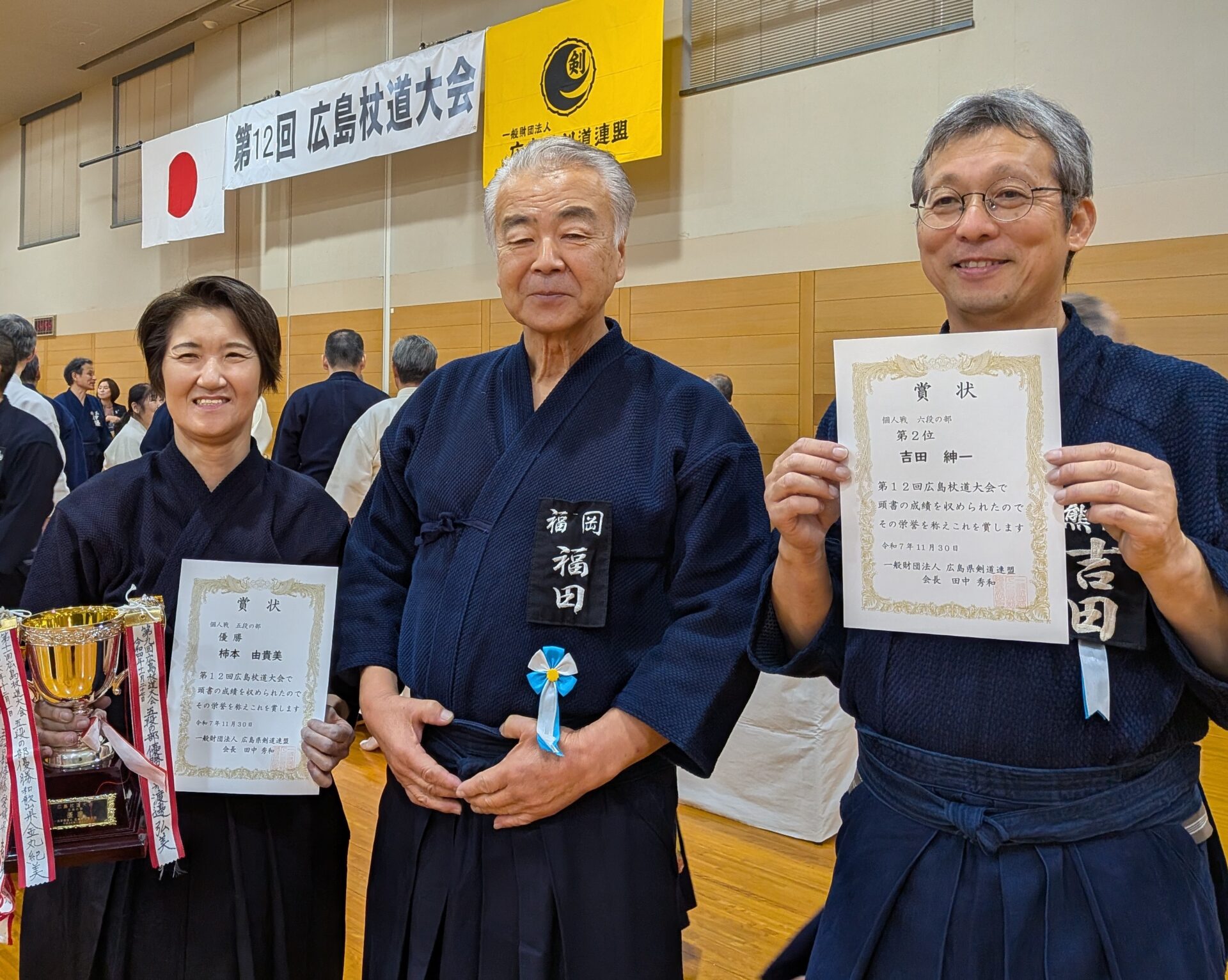 ↓5段優勝、柿本さん&福田先生&6段準優勝、吉田さん![]()