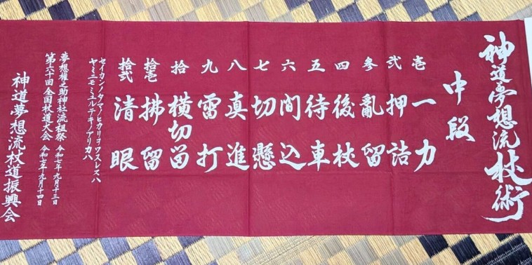 奈良の上村先生。私には絶対無理、、、大きく力強いスピード感ある杖。あ、前日の稽古会で、今年の流祖祭記念品の手拭いを上村先生が買って下さいました。ありがとうございました😆