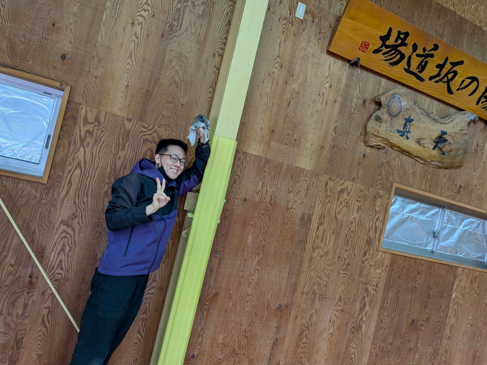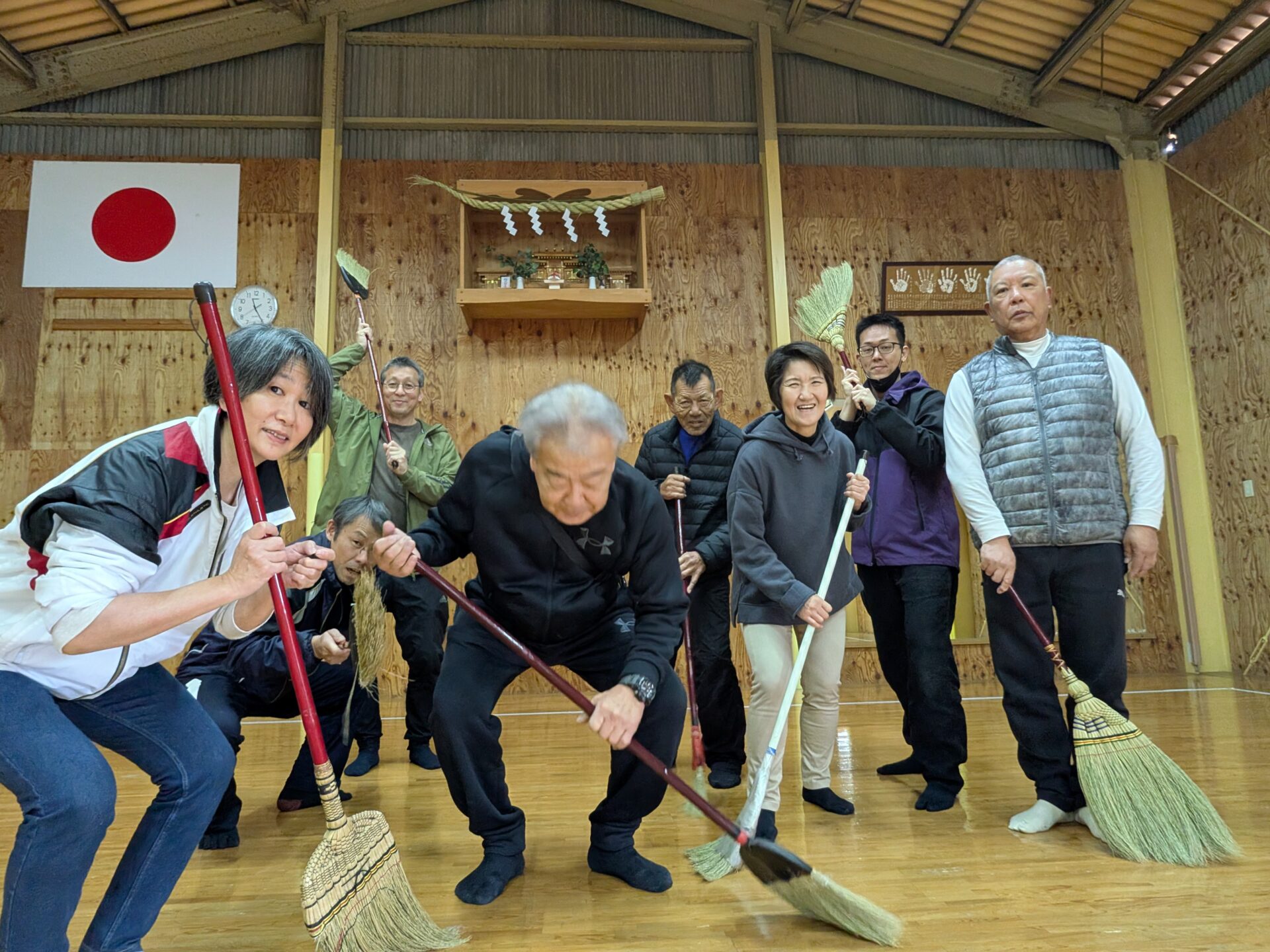 4人で道場の床全面の雑巾がけをやり切りました✌️
