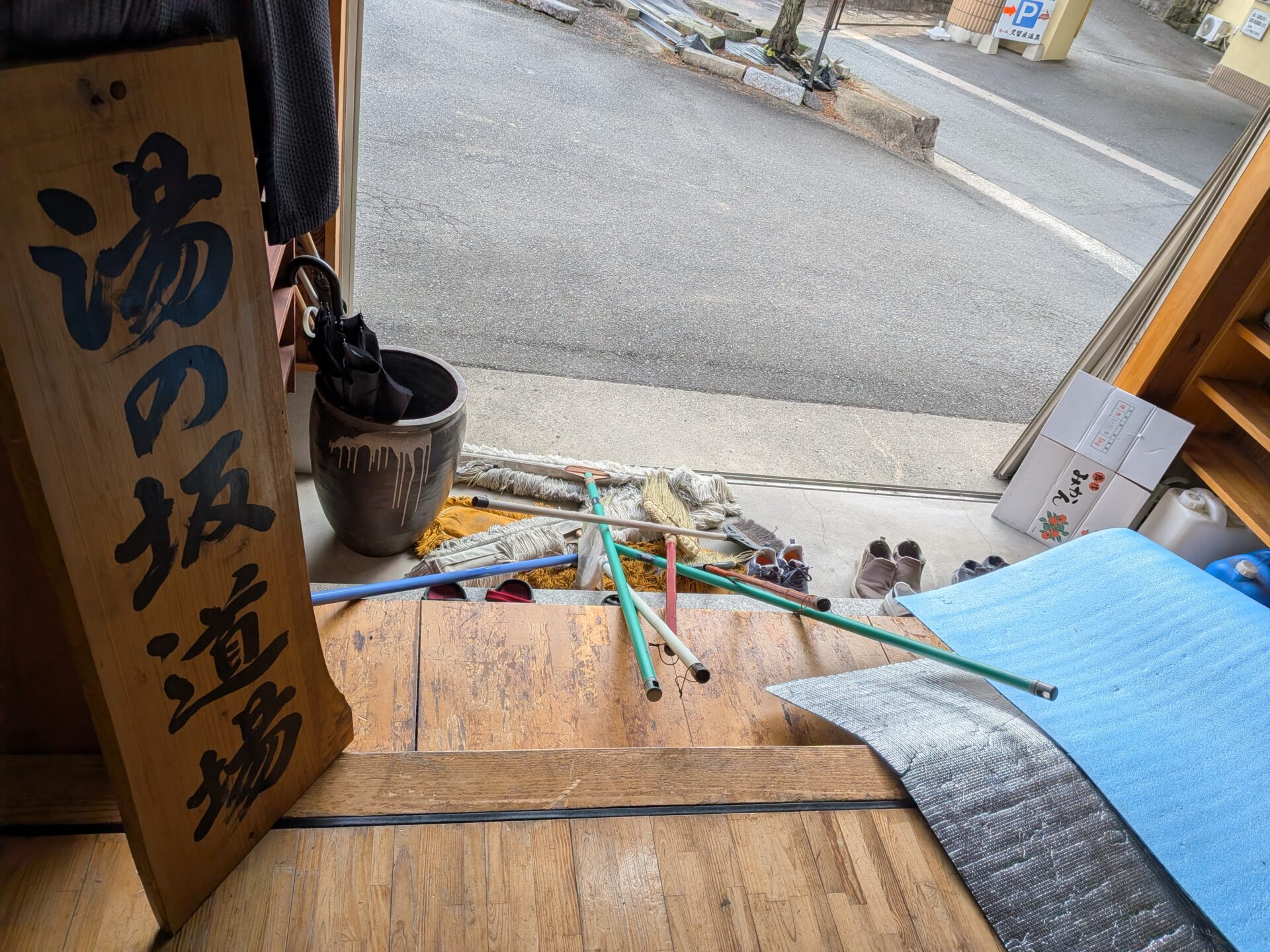 道場の水道。お湯と水が出るんですが、水は地下水。そしてお湯は「温泉」なんですよ〜😉